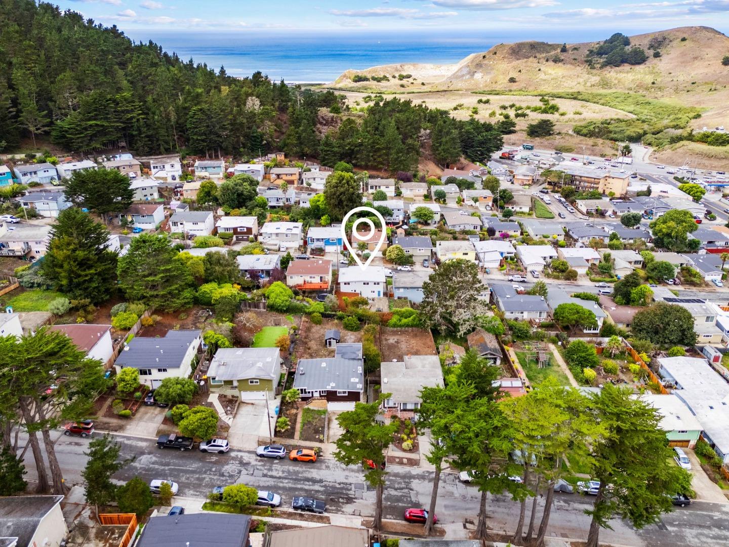 Modern coastal cool nestled in the woodsy charm of Vallemar. Bike beside the ocean, walk to the beach, hike Mori Point, and live out all your best and brightest coastside dream vibes at 241 Hillside Drive. This is midcentury modern at its finest - wood-beam ceilings, cozy fireplace, beautiful bathrooms, primary en-suite complete with walk-in closet, and a kitchen primed for gatherings galore. Upstairs are all three bedrooms, two bathrooms, and living spaces. Downstairs off the garage is a retreat all its own: a huge, open room for your very own home gym, office, playroom, hobby space, or whatever your heart desires! Bring the party downstairs and outside to your large patio area, then mosey through the yard to enjoy magnificent views amongst gorgeous fruit trees. Theres more to love: new electrical throughout, fresh flooring, paint, and landscaping. Here, at 241 Hillside, you will be home. (Note: exterior front photo has digitally enhanced tree branches, back has enhanced paint on staircase.)