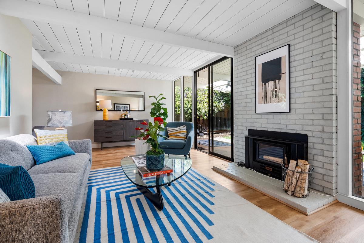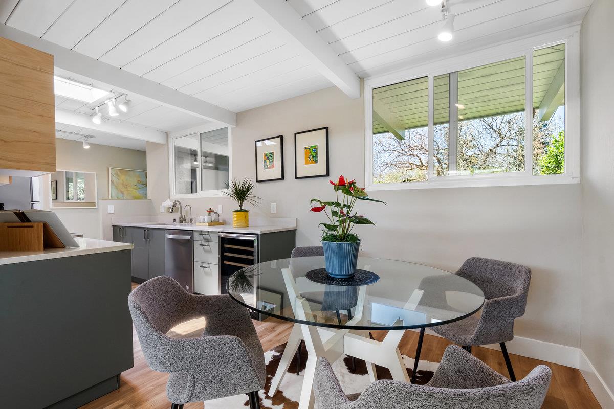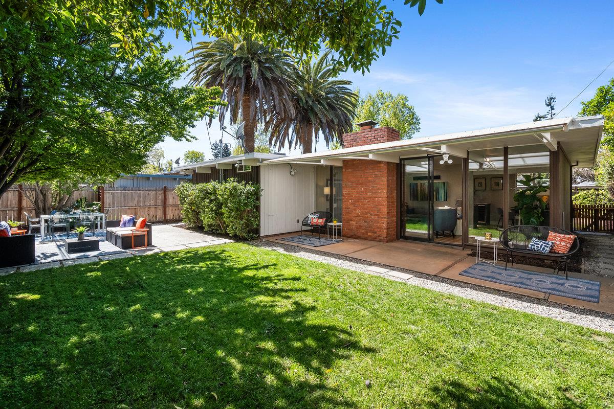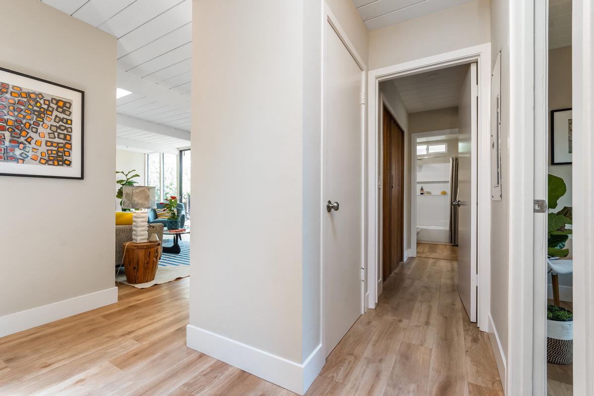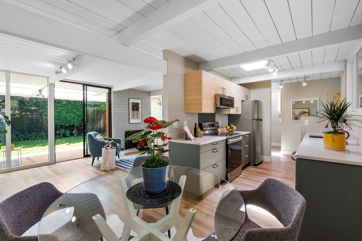 Immerse yourself in the timeless elegance of this fully updated mid-century Eichler home. The open and bright layout unfolds before you, boasting floor-to-ceiling windows that bring the beauty of natural light into every corner, complemented by striking wood beams overhead. The house has undergone significant upgrades for your comfort and peace of mind. This includes new panels, wiring, outlets, and switches, ensuring safety and modern functionality throughout. Freshly installed ventilation exhausts in both bathrooms enhance air quality and comfort, while updated appliances, such as a sophisticated wine fridge and a multi-stage water filtration system, cater to both your entertainment and health-conscious needs.The interior boasts newer floors and insulation in all exterior walls, optimizing energy efficiency and creating a cozy atmosphere year-round. Both the master and hall bathrooms have been meticulously renovated, embodying modern luxury and convenience, with additional upgrades to the bathrooms, a newer sewer line, and a laundry sink further enhancing the home's functionality. The backyard, adorned with mature fruit trees, offers a verdant retreat and a taste of nature's bounty. This remarkable Eichler home awaits to start its next chapter with you.