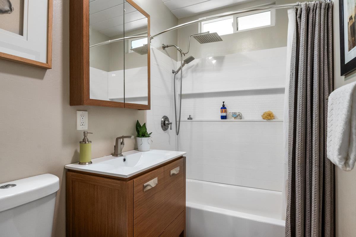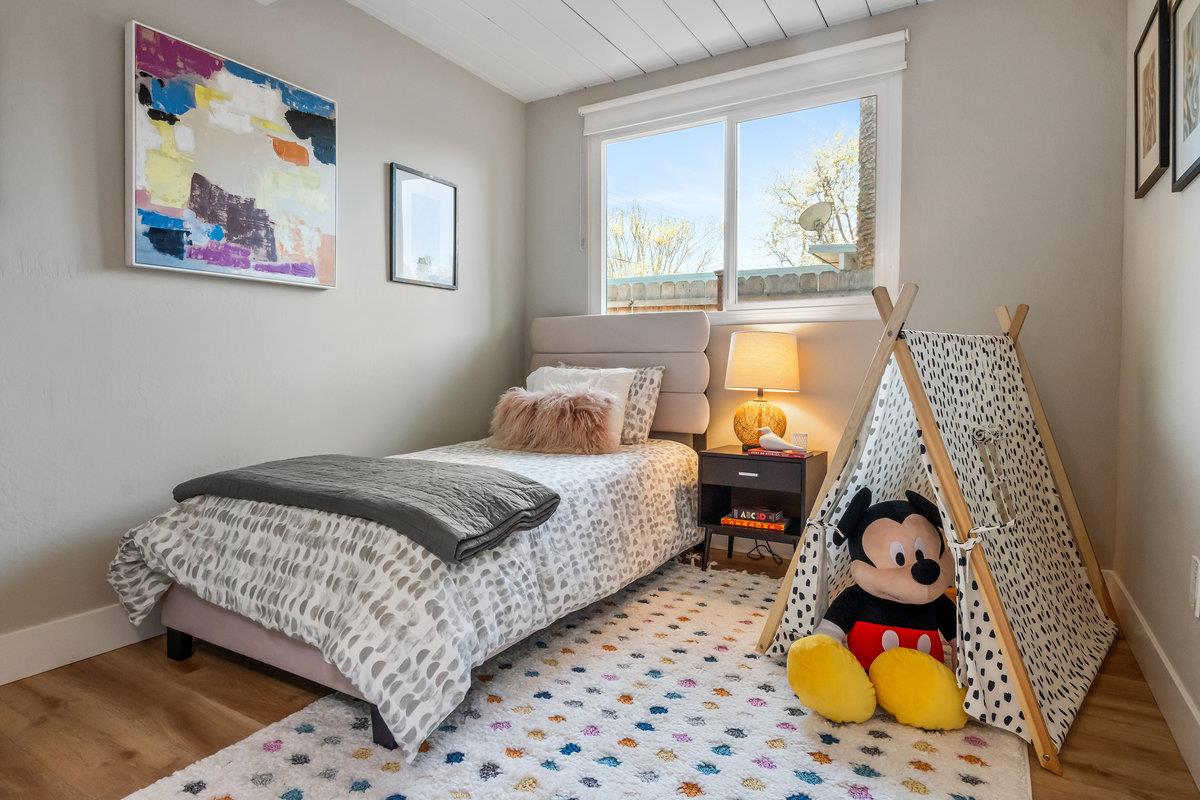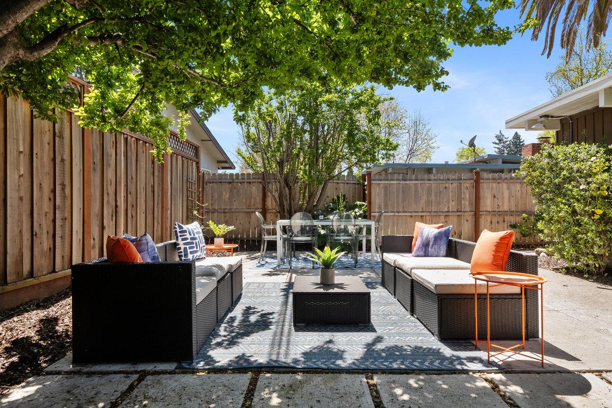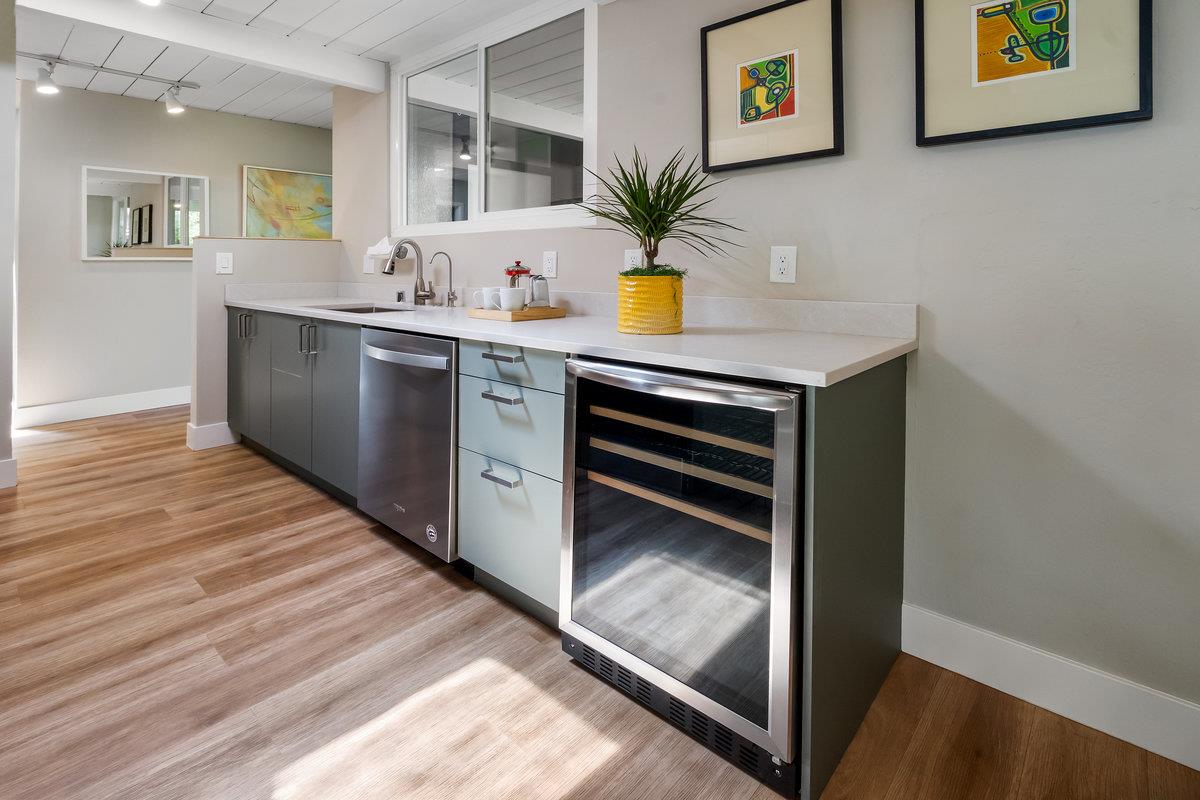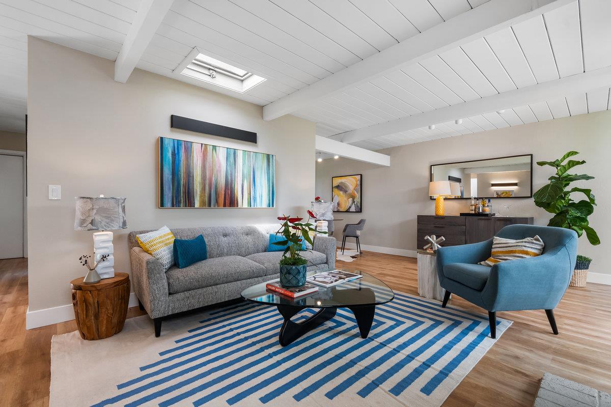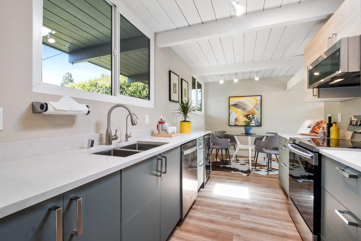 Immerse yourself in the timeless elegance of this fully updated mid-century Eichler home. The open and bright layout unfolds before you, boasting floor-to-ceiling windows that bring the beauty of natural light into every corner, complemented by striking wood beams overhead. The house has undergone significant upgrades for your comfort and peace of mind. This includes new panels, wiring, outlets, and switches, ensuring safety and modern functionality throughout. Freshly installed ventilation exhausts in both bathrooms enhance air quality and comfort, while updated appliances, such as a sophisticated wine fridge and a multi-stage water filtration system, cater to both your entertainment and health-conscious needs.The interior boasts newer floors and insulation in all exterior walls, optimizing energy efficiency and creating a cozy atmosphere year-round. Both the master and hall bathrooms have been meticulously renovated, embodying modern luxury and convenience, with additional upgrades to the bathrooms, a newer sewer line, and a laundry sink further enhancing the home's functionality. The backyard, adorned with mature fruit trees, offers a verdant retreat and a taste of nature's bounty. This remarkable Eichler home awaits to start its next chapter with you.