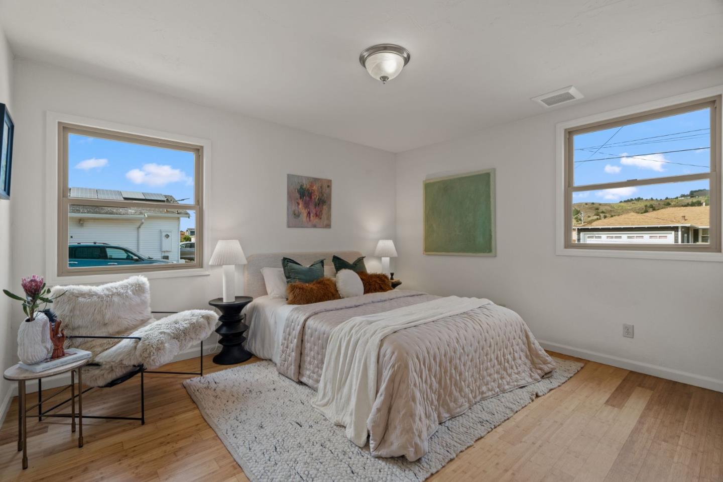 Beach days, BBQ nights, repeat. You'll be living your best coastal life at 652 Montezuma, located in Pacifica's coveted Linda Mar neighborhood. This thoughtfully updated 3-bedroom, 1-bath rancher pairs timeless coastal charm with extensive modern upgrades. Newly painted inside and out. Inside, freshly sanded bamboo floors, a cozy fireplace, and an open, light-filled layout flow seamlessly to the large sunny backyard. The kitchen and bath feature slate tile, granite counters, and quality finishes, while premium double-paned windows keep the home quiet and efficient. Substantial insulation in ceilings and walls ensures year-round comfort. Major improvements include a full electrical upgrade with permits (rewired with 200 amp panel), a newer water heater, and sewer lateral replacement, and EV charger wiring. Just a short stroll to Linda Mar Beach, dining, shopping, and scenic coastal trails, 652 Montezuma offers the best of nature, convenience, and the Pacifica lifestyle - surf in the morning, hike in the afternoon, and gather by the fire at night. This uber convenient location is only a quick hop to SF and Silicon Valley. More than a house, it's a lifestyle where every day feels like a vacation. Here, you will be home. (Note: front exterior mulch area has been digitally enhanced.)