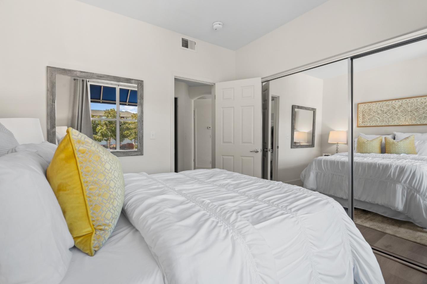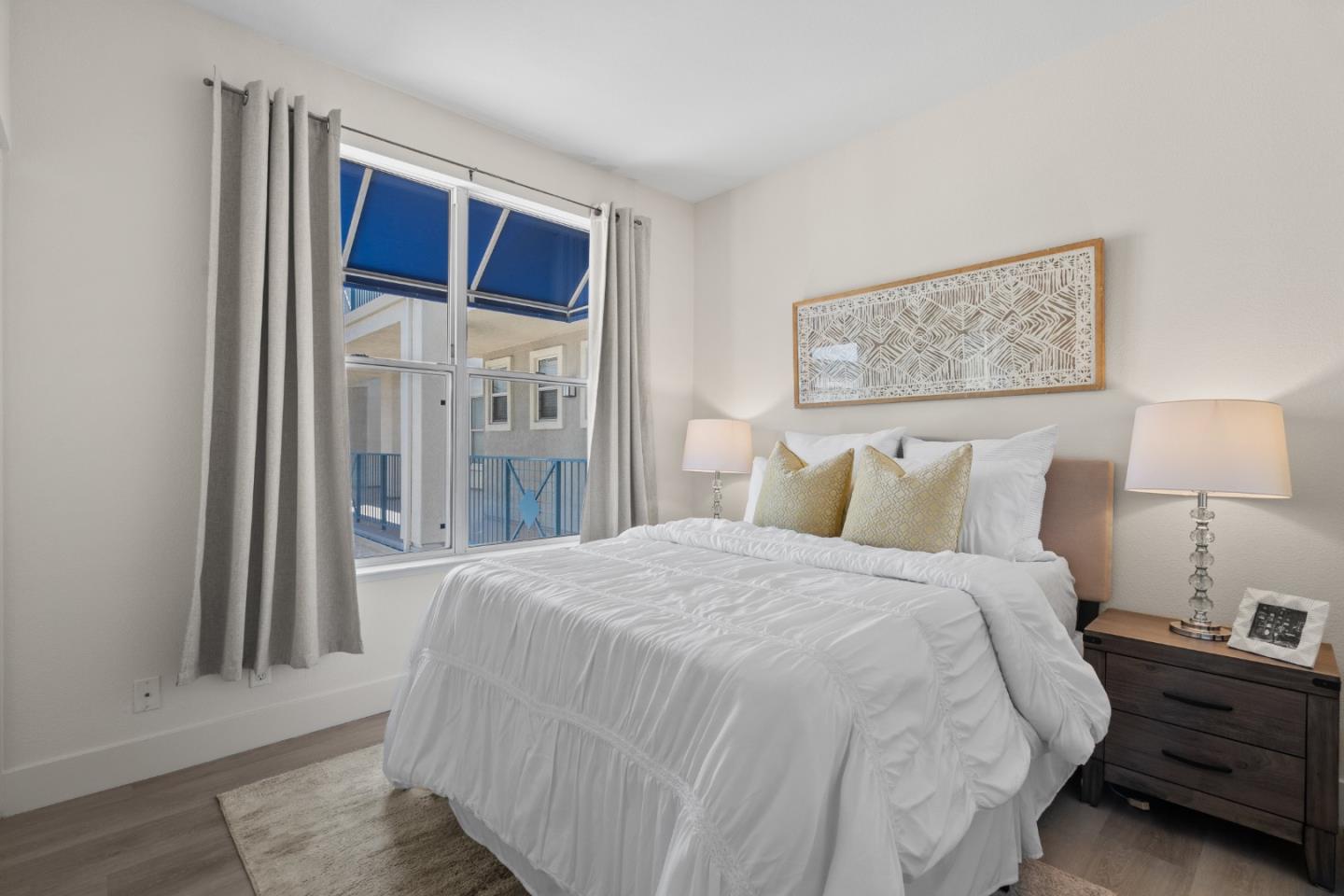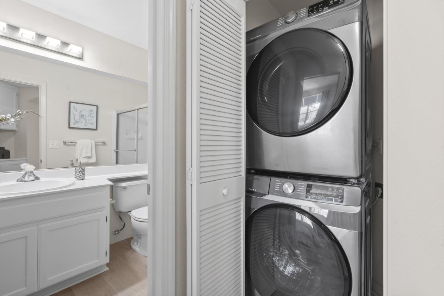 New Price! Seller motivated! Discover incredible value in this sun-drenched, updated 2 bed/2 bath Redwood Shores condo, priced under $1M. A rare find in this highly sought-after community! This bright end-unit on the second floor, with no neighbors below, offers modern comforts and serene living. Step into a welcoming entry with a double-door closet, leading to a spacious living area featuring a TV niche, ceiling fan, and cozy fireplace. The dining area, with a stylish new light fixture, flows onto a sunny deck perfect for relaxing. The open kitchen shines with white cabinetry, a new gas stove/cooktop, stainless steel refrigerator, and breakfast bar counters. New, elegant hard flooring and baseboards grace the home (except bathrooms and laundry), complemented by a convenient stacked washer/dryer. The master suite is a retreat with four windows, a ceiling fan, walk-in closet, and a luxurious bath boasting double sinks, a new light fixture, private toilet, and a bathtub with sliding glass doors. The second bedroom offers a wide closet and large window, steps from a full hallway bathroom. Enjoy a 1-car enclosed garage plus an assigned parking spot (EK) nearby. Just a short walk to the main clubhouse, swimming pool, spa, waterfront and Shannon Park w/ picnic tables, play structures.
