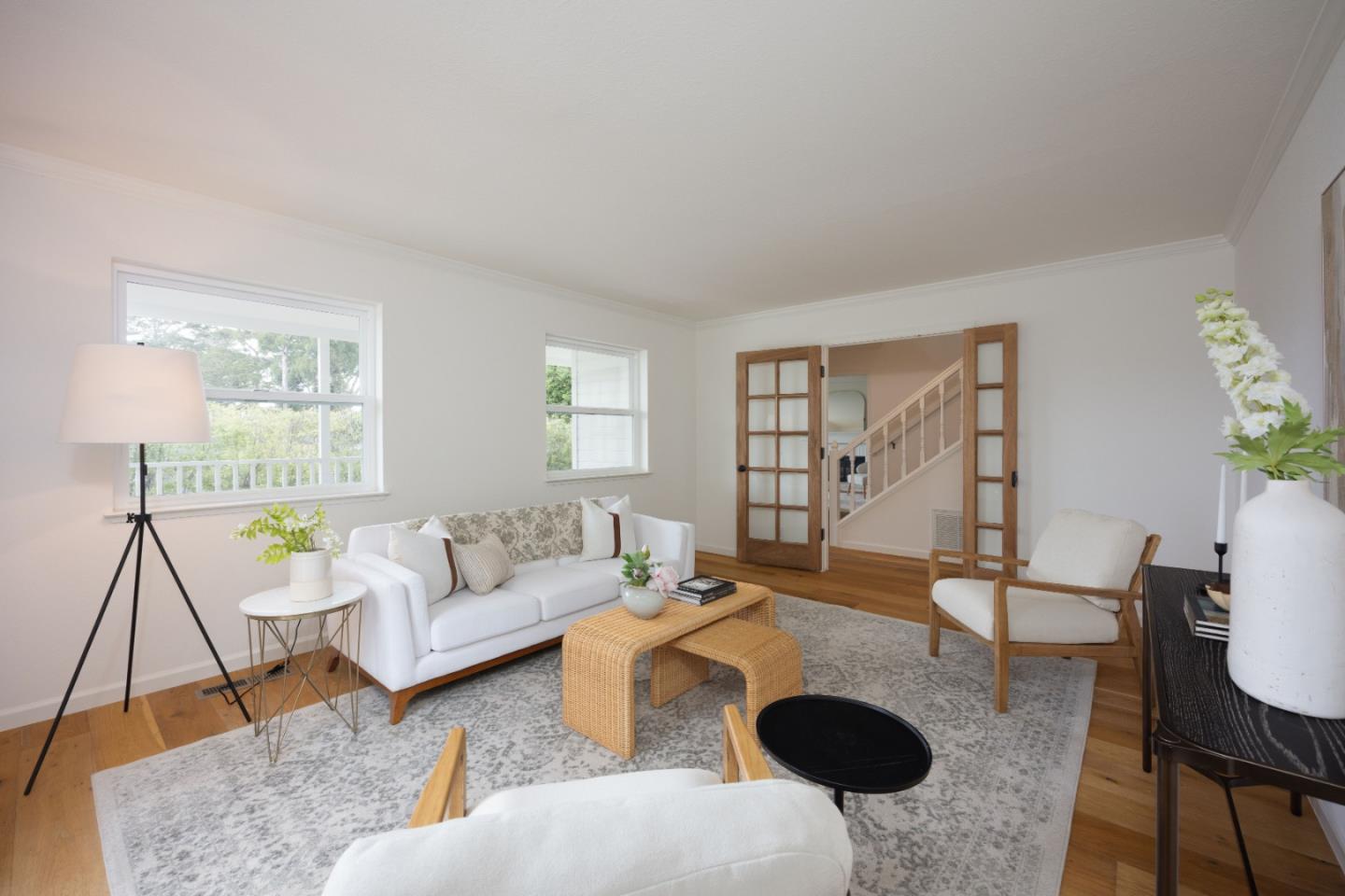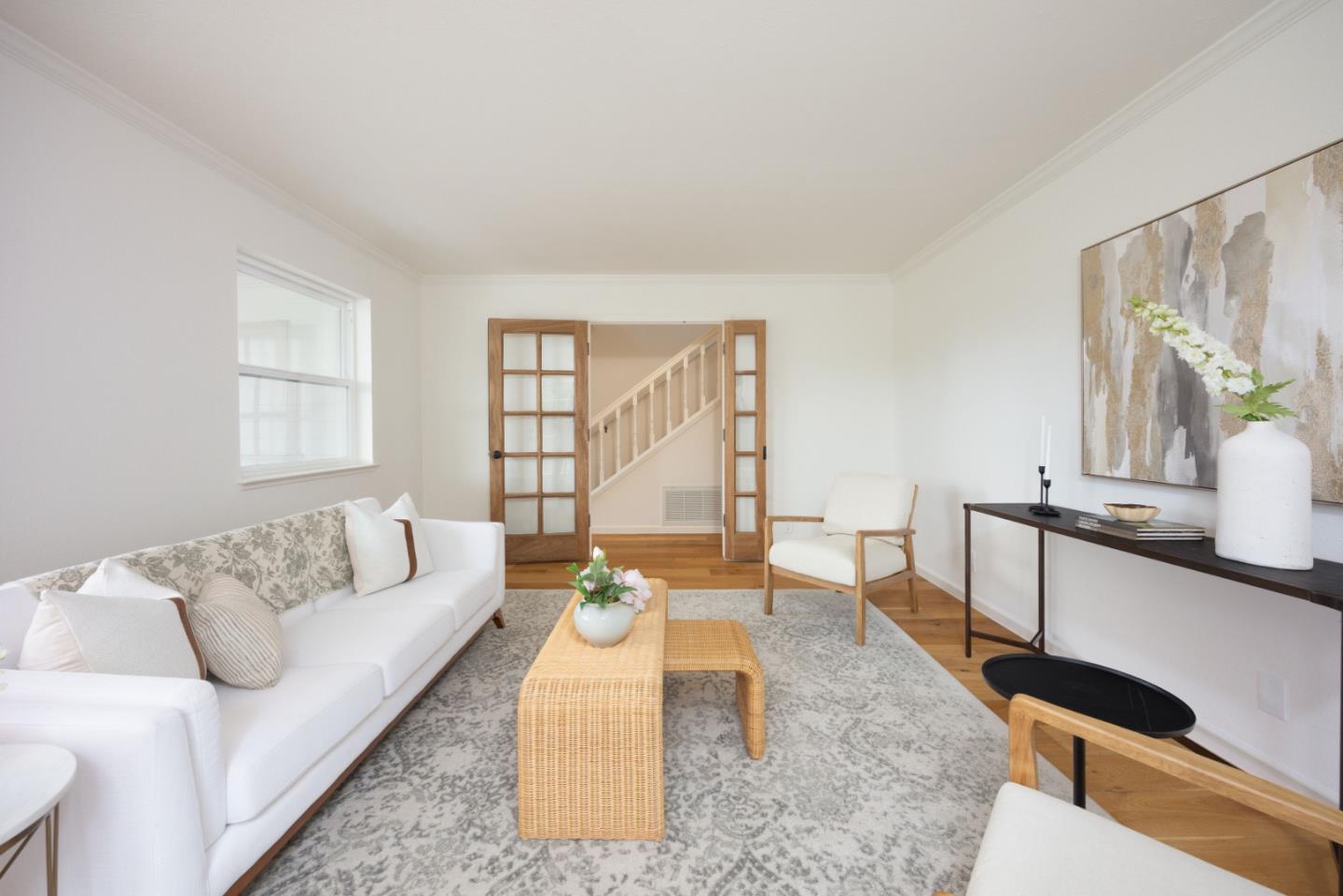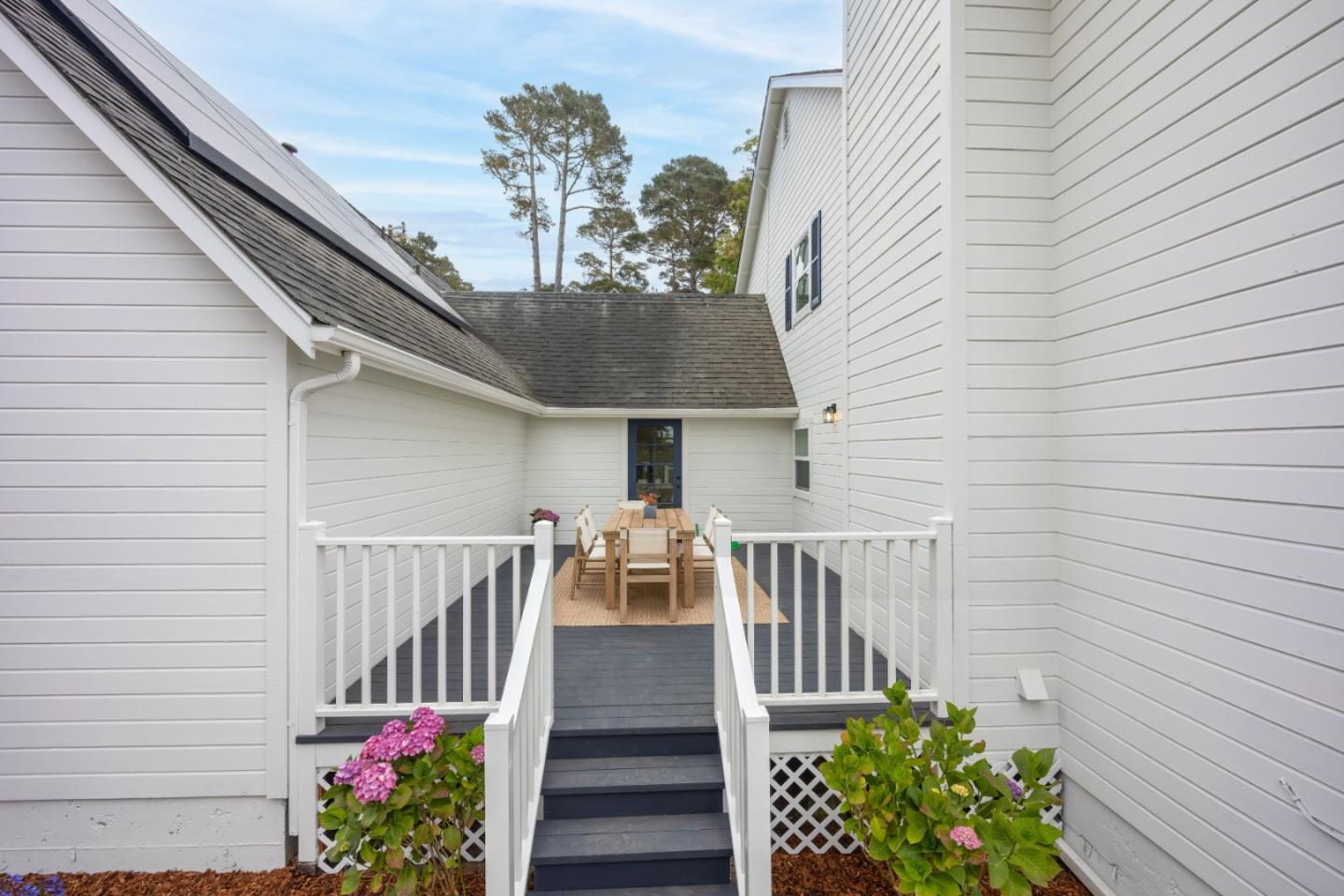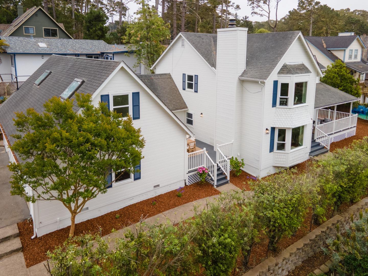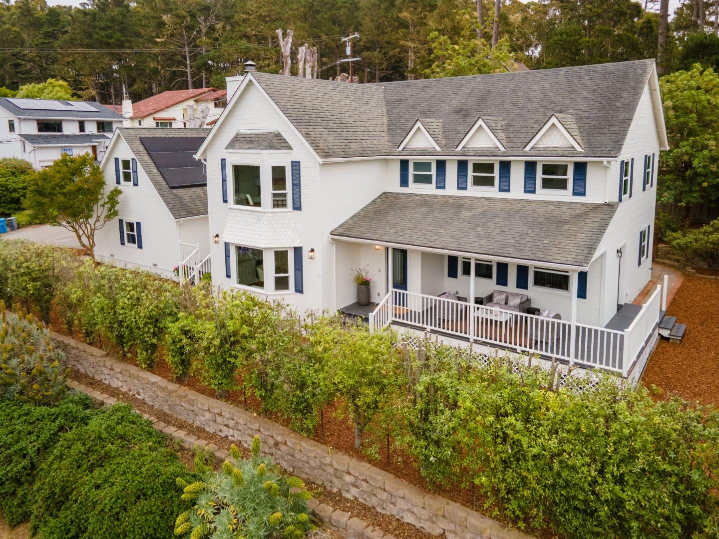 Welcome to 900 Franklin, where timeless charm meets modern living in the heart of laid-back Montara. With a spacious 4-bed, 3-bath main home, full of natural light and surrounded by lush landscaping, plus a 1-bed, 1-bath in-law unit above a 3-car garage, you'll be home. Inside, wide-plank flooring and a smart floorplan give room to gather, retreat, and do it all. Large kitchen and a dedicated dining room? Check and check. Living and family rooms? Of course. Dedicated laundry/mud room? You bet. Downstairs also features a bedroom and full bath. Upstairs has two more bedrooms, a full bath, plus a generous primary suite complete with walk-in closet, en-suite bath, and tranquil vibes. Bonus points for the separate 1-bedroom, 1-bath in-law unit with its own entrance, perfect for guests, extended family, or a little extra income. Outside, enjoy morning coffee and evening hang sessions on either of your two gorgeous porches. Tons of yard space with fresh landscaping sets the stage for garden projects and outdoor adventures. Other perks? Outdoor shower, large attic, and owned solar with not one but two Tesla Powerwalls keeping things efficient, smart, and ready for whatever the future brings. Here, at 900 Franklin, you'll be home.